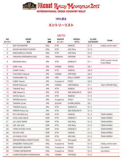 FA-coat Rally Mongolia 2017 Entry List