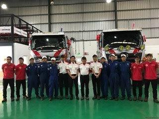 写真は昨年の4月7日にオープンした、日野アルゼンチンさんの工場をお借りして出発前の準備をさせて頂き、パラクアイに向かう前の記念写真です。