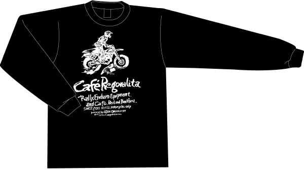 ヤマダテツ画伯の書いたカフェ・レゴラリータのロゴ&ロゴマーク。いいかげんなんですが、これがTシャツやお店のマークにもなってしまうんだろうか。ちなみに水墨画みたいなもんです。